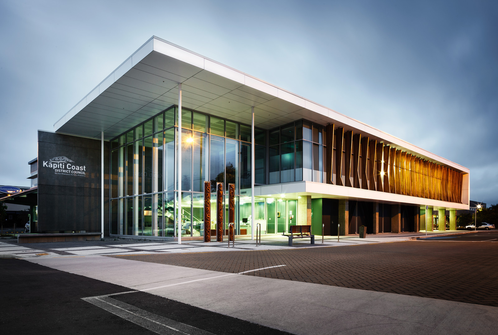 The completed building creates a civic gateway respectful of the form and scale of the adjoining public buildings and local Iwi. Significant attention has been given to embodiment of sustainable design features including optimization of glazing and shading, responsive heating, cooling and lighting systems, passive thermal design initiatives with respect to the building envelope and structure, waste management systems, considered selection of local and sustainable materials and engagement of local suppliers and contractors.